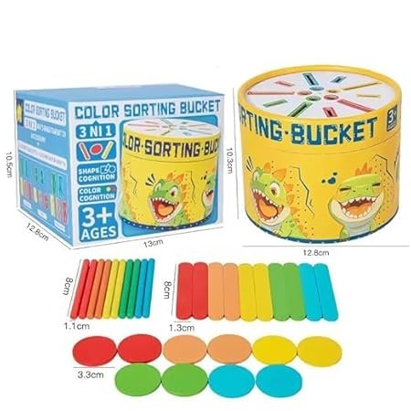 ๐ŸŽจ 3 in 1 Colour Sorting Bucket โ€“ Includes sticks, discs & sorting cards for interactive play.