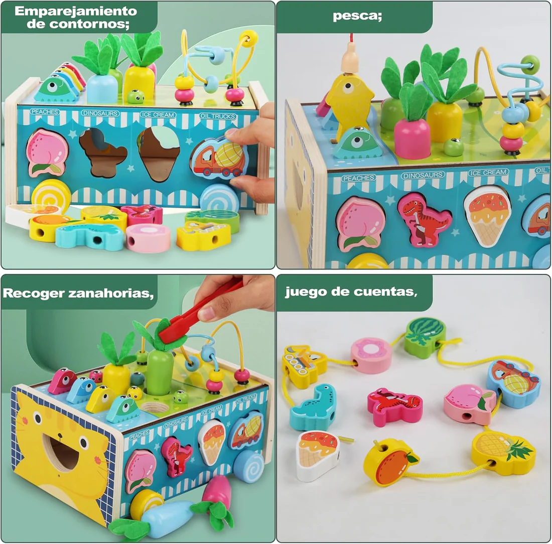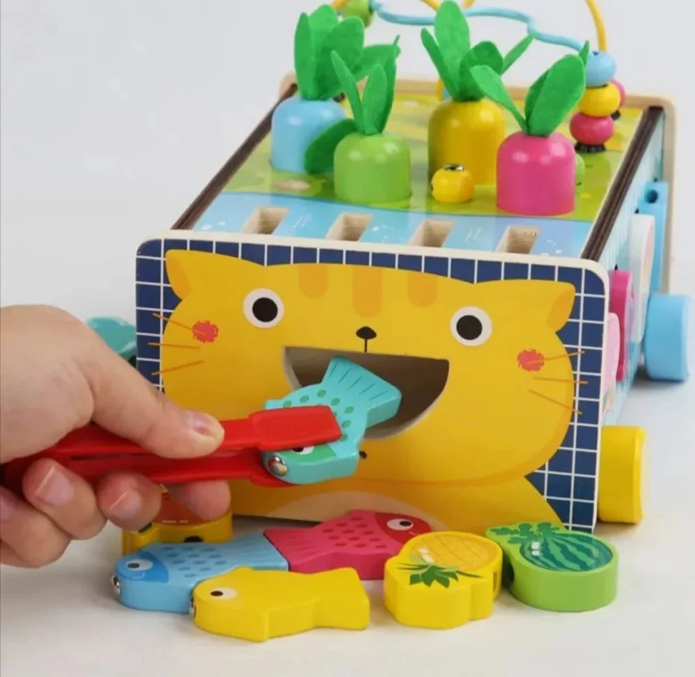 ๐ 8-in-1 Multi-Functional Play โ Combines magnet fishing, bead mazing, carrot picking, shape sorting, gripping, and pull-along activities.