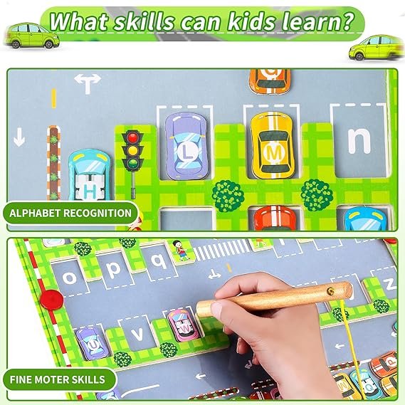 ๐น Alphabet Learning Toy โ Match cars to the correct alphabet-marked parking slots.
