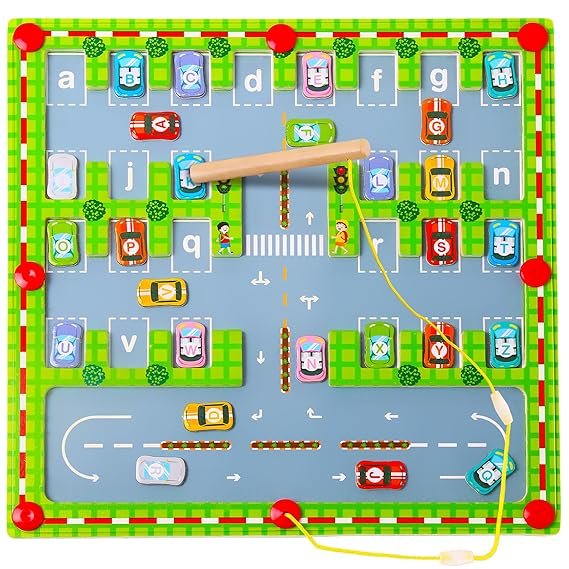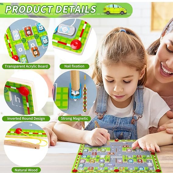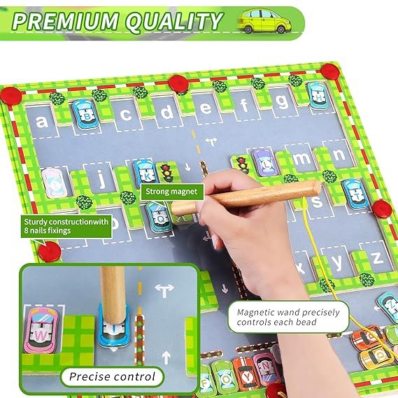 ๐น Interactive Magnetic Game โ Includes a magnetic pen for guiding cars to their places.