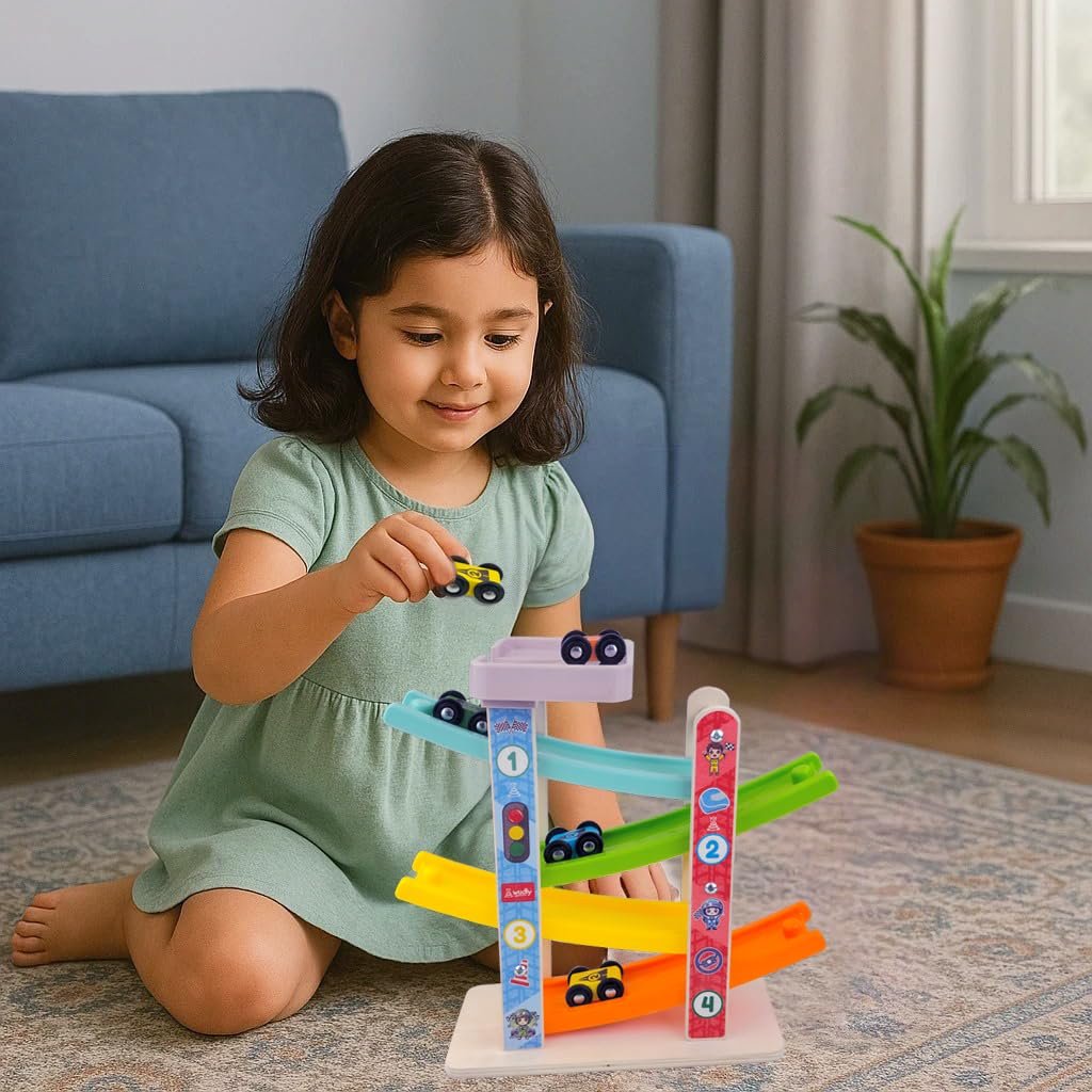 Exciting Car Ramp Racer Track toy that lets kids race cars down colorful ramps while boosting hand-eye coordination, fine motor skills, and problem-solving โ€“ perfect for toddlers and preschoolers.