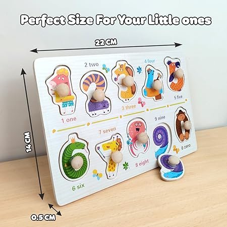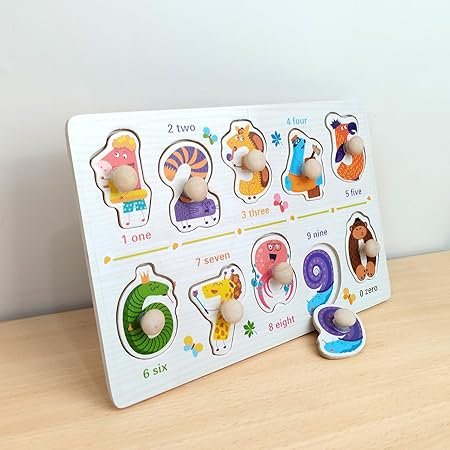 Colorful Number Animal Theme Knob Puzzle designed to teach numbers and animals while enhancing shape recognition, hand-eye coordination, and fine motor skills – perfect for toddlers and preschoolers.