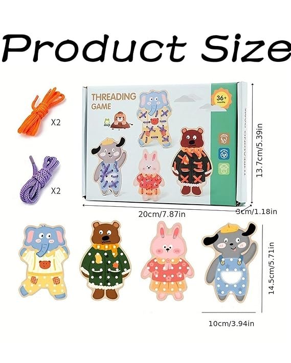 ๐งต Animal Threading Game for Kids โ Includes colorful laces & animal-shaped wooden boards.