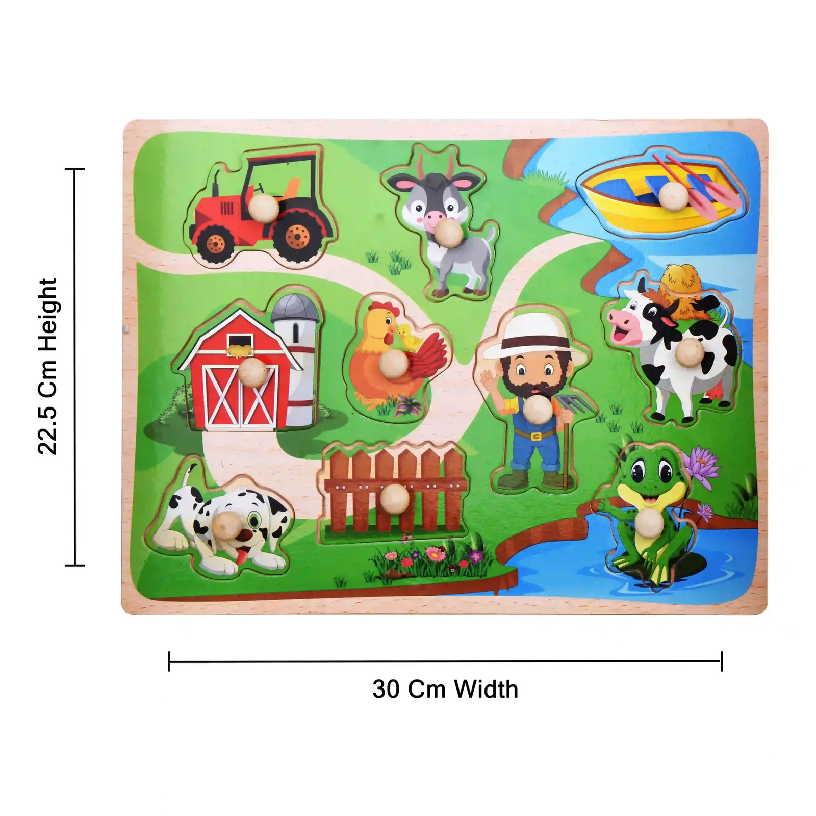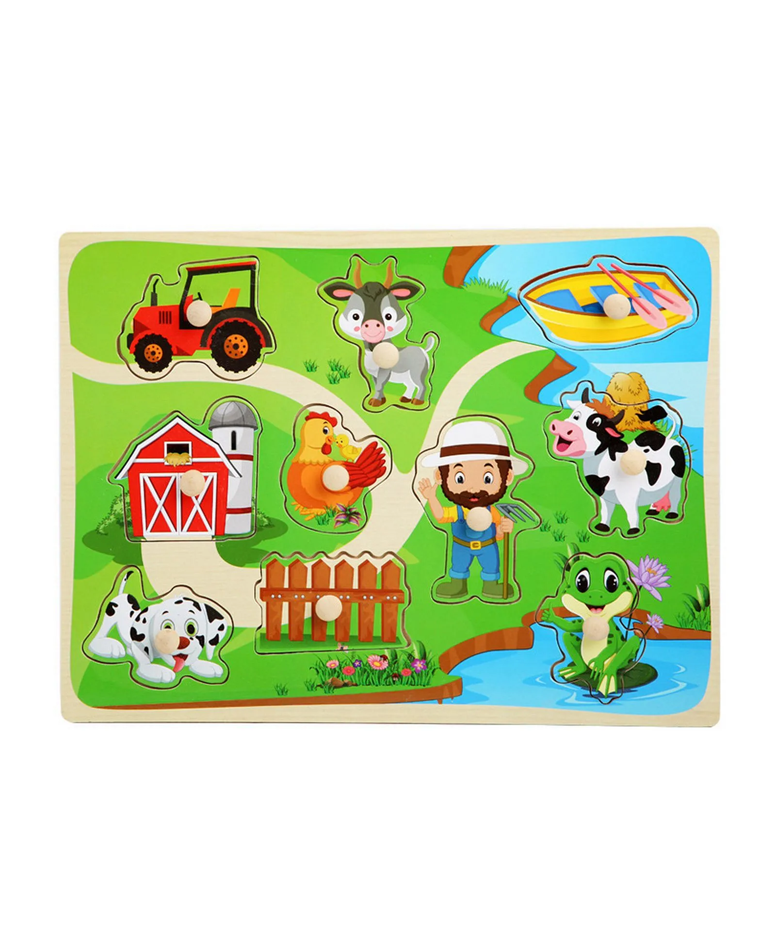 π Farm Theme Puzzle Board β Includes adorable animals, a farmer, tractor, barn, boat, and more for interactive storytelling.