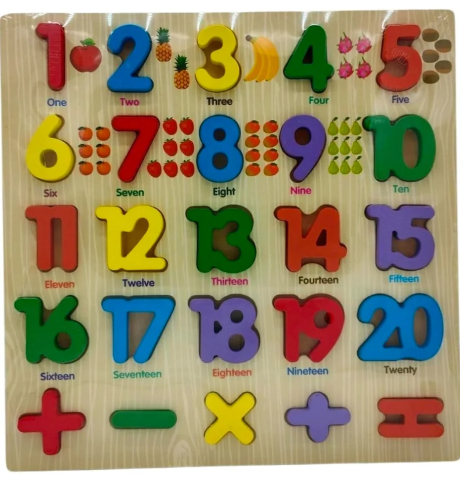 Fun and educational Wooden Numeric Board with Pictures designed to teach kids numbers, counting, and object recognition & perfect for early learning and preschool playtime.